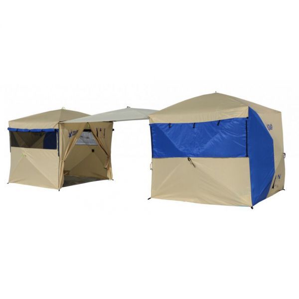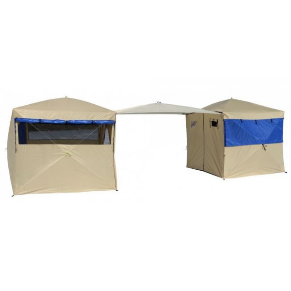 Комплект палатка-шатер летняя Polar Bird 3SK из 2 шт. + Тент-навес для соединения жилых модулей. В серии палаток-шатров SK (конструктор), на входе установлена молния, что позволяет создавать различные варианты лагеря, используя дополнительный тент-навес и соединять им между собой палатки.