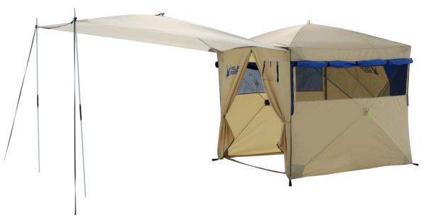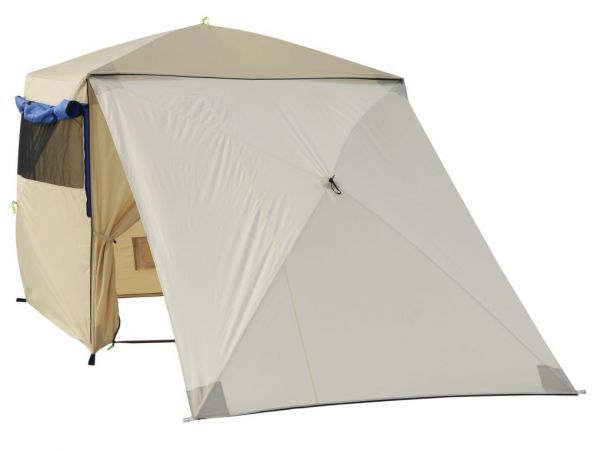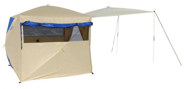 Универсальная палатка-шатер Polar Bird 3 SK с тентом-навесом. Быстросборная конструкция куб позволяет устанавливать и складывать палатку всего за 1 минуту. На входе установлена молния, что позволяет создавать различные варианты лагеря, используя дополнительный тент-навес и соединять им между собой палатки.