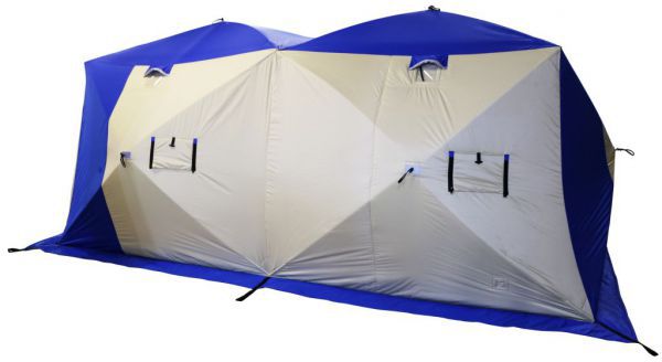 Палатка "Polar bird" 4Тх2 - это сдвоенная палатка на основе зимней платки куб Polar Bird 4T, в плане представляет собой прямоугольник по полу , 2,3 на 4,6 метра.