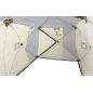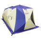 Тент изготавливается по специальной технологии, без использования термостежки, поэтому в нем отсутствуют мостики холода, а утеплитель остается пышным максимально эффективно сохраняя тепло в палатке.