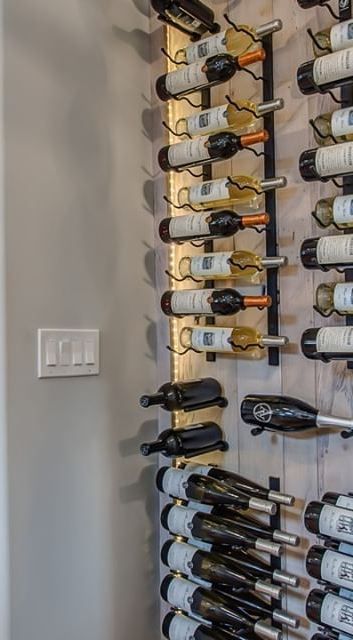 Стеллаж на 9 ярусов (глубина 2 бутылки): стиль, функциональность и вместимость для вашей винной коллекции. Может быть размещена на стене из любого материала - бетон, гипсокартон, кирпич, дерево. И использоваться как дома, так и в кафе, ресторанах, барах.