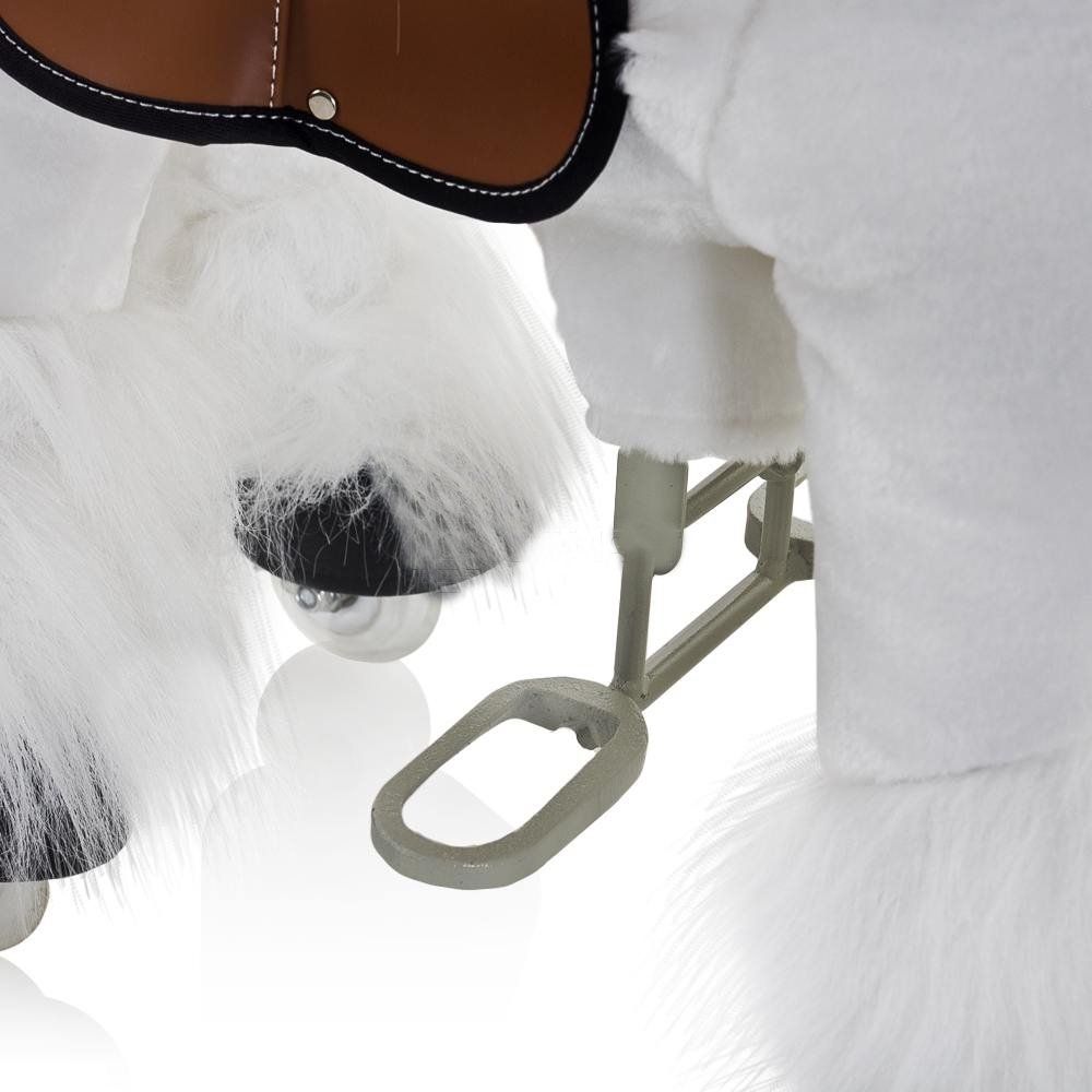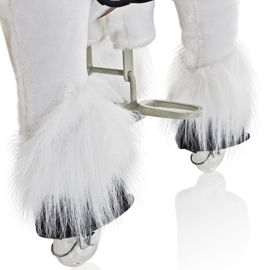 Каркас игрушки изготовлен из высокопрочной стали, рычажно-шарнирный механизм сбалансирован и устойчив, корпус выполнен из пенопласта. Ножки игрушки оснащены полиуретановыми колесами, диаметром 80 мм, едут плавно и бесшумно. В механизме колес имеется противооткатная защита. Экстерьер повторяет внешний вид животного. Меховая одежка выполнена из мягкого, гипоаллергенного материала. Всадник обязательно должен сидеть в седле, а не на корпусе поницикла. Одновременно кататься на поницикле может только один всадник. Поницикл двигается только вперед. Не пытайтесь двигать его назад, так можно повредить колеса. Никогда не просовывайте руки между сиденьем седла и корпусом поницикла. Хранить поницикл нужно в вертикальном положении, в сухом, проветриваемом помещении.