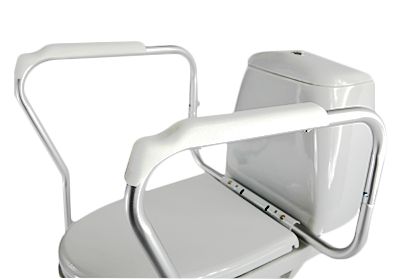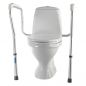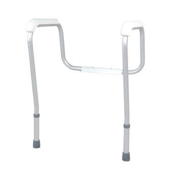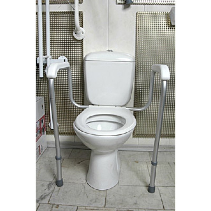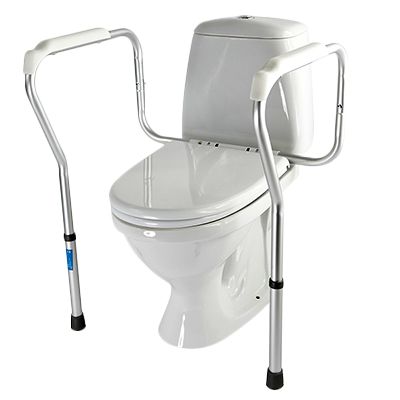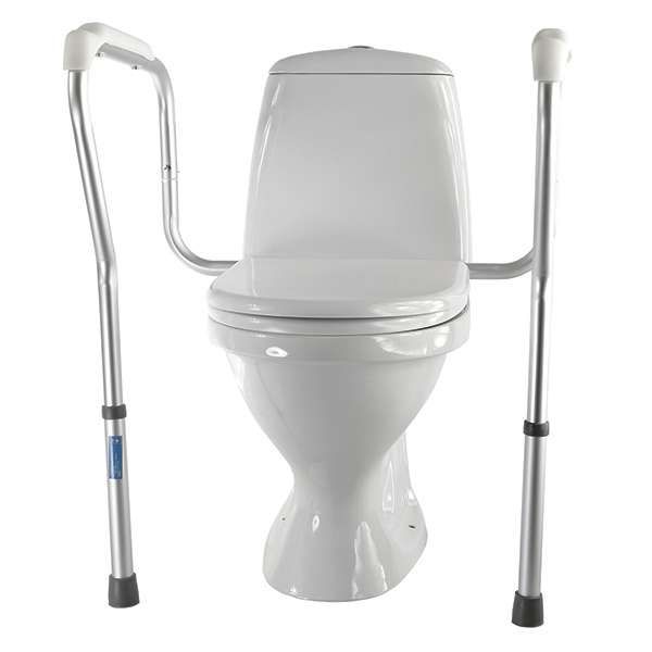 Поручень опирается на полку между сливным бачком и стульчаком унитаза. Ножки могут регулироваться по высоте, что позволяет индивидуально подстраивать поручень под человека.