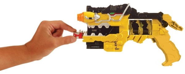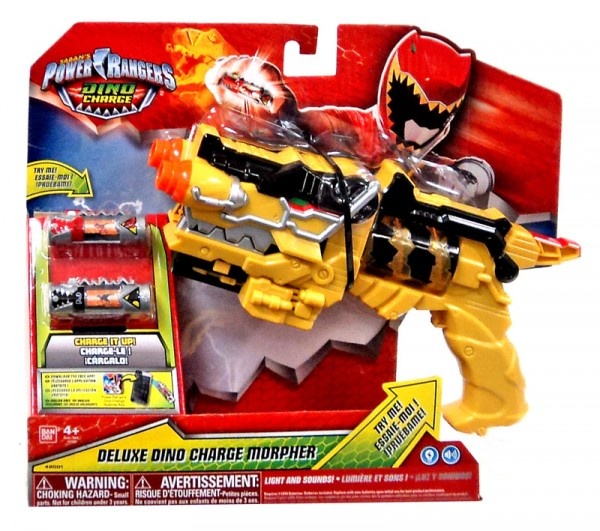 С применением специально разработанных зарядов Dino Charger есть возможность разблокировать дополнительные оригинальные интонации. Нужно вставить их в предназначенные для этого отверстия, после этого закрутить ствол, чтобы он зарядился. Morpher сможет вычислить более 40 видов Дино-зарядных агрегатов, и при установке он озвучит имя динозавров и их рейнджеров-владельцев, таким же образом, как и в передаче.