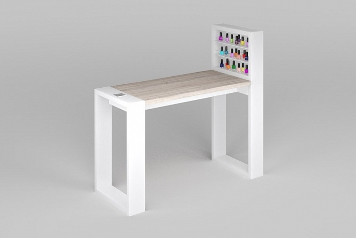 Модульный маникюрный стол Matrix изготовлен из влагостойкого и прочного ЛДСП. В столешнице стола предусмотрены специальные отверстия для маскировки проводов, модель оборудована удобной подставкой для лаков.