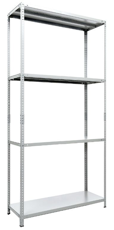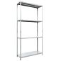 Четыре полки 100х60 см. Шаг регулирования высоты полок – 25 мм. Высота бокового ребра полки — 33 мм. Допустимая распределенная нагрузка на полку – до 100 кг.