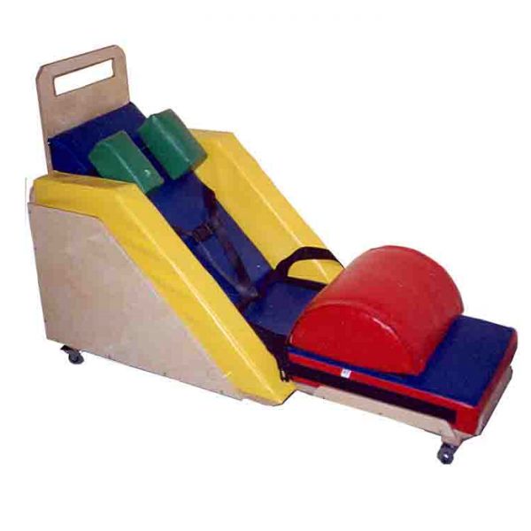 Опора для сидения Радуга предназначена для детей с ДЦП, органическим повреждением мозга, миопатией, черепно-мозговой травмой, в возрасте от 1 -12 лет (весом до 40кг), используется для постепенной адаптации пациента, находящегося в положении лёжа на спине в положение сидя. Позиционер-трансформер состоит из семи мягких модулей и жесткой деревянной основы на колесиках. Сидение используется на занятиях ЛФК в учебных и домашних условиях.
