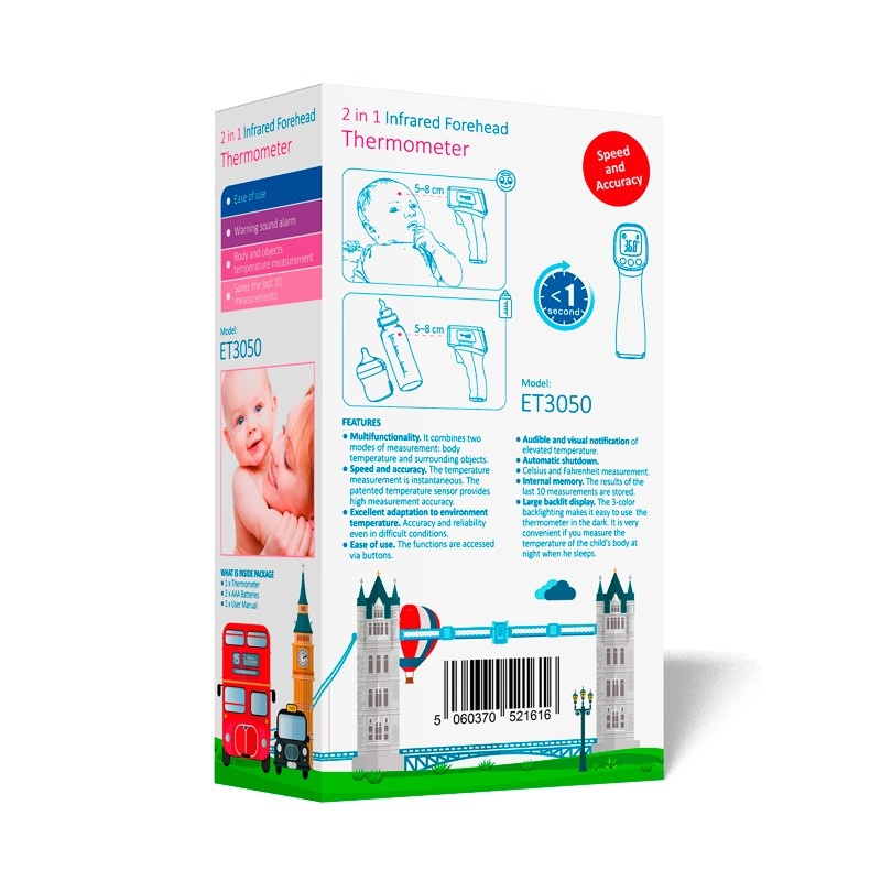 Инфракрасный лобный термометр 2 в 1 Ramili ET3050