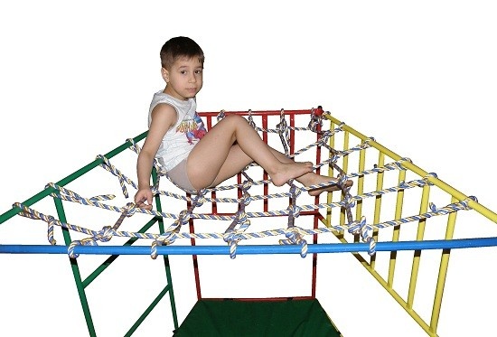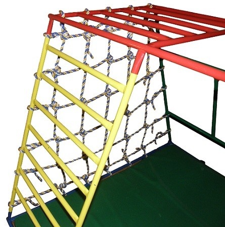 Трапециевидная сетка Ранний Старт создана для комплектации с детским спортивным комплексом. Занятия на сетке способствуют тренировке вестибулярного аппарата, повышают координацию движений, развивают ловкость и внимание. Канат представлен полипропиленом, устойчивым к истиранию. Сетка закрепляется особенным способом, указанным в соответствующей инструкции.