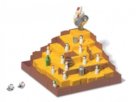 Петух Кики Рики пробрался в курятник, уселся в гнездо и бросается яйцами в несушек, которые хотят его прогнать. Побеждает тот игрок, чьи курочки первыми прогонят петуха.