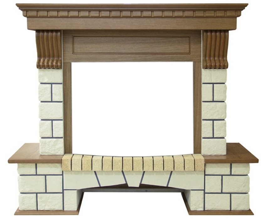 Каминные портал Pierre Luxe под очаг Dioramic 25 FX украсит интерьер вашей квартиры, загородного дома или ресторана. Классический стиль в современном исполнении, материалы, полностью имитирующие натуральные породы дерева и камня. Массивный вид каминной полки уравновешивается легкими резными консолями. Внизу имеются небольшие декоративные полочки, которые придают общую законченность и лаконичность стилю.