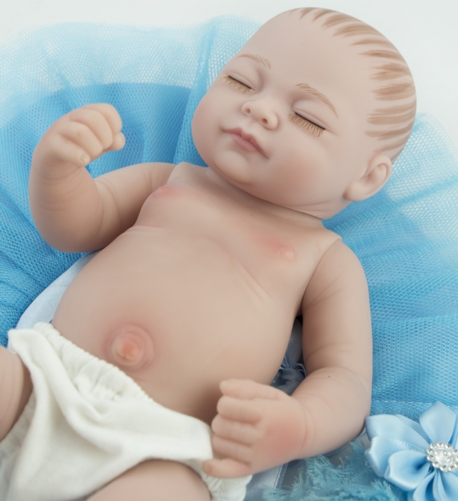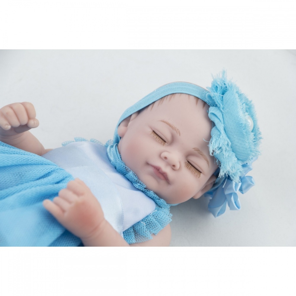 Тельце – полностью силикон-винил, очень приятное на ощупь. Можно купать! Спящая. Реснички приклеены. Волосики прорисованы вручную. Цвет платья может отличаться. В комплекте идет свидетельство о рождении.