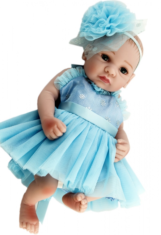 Тельце – полностью силикон-винил, очень приятное на ощупь. Акриловые глазки смотрятся очень реалистично. Реснички приклеены. Волосики прорисованы вручную. Одета в очень симпатичное платье.