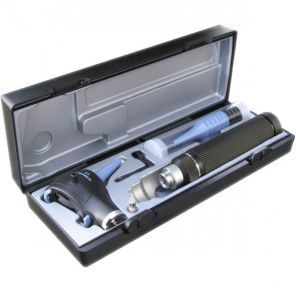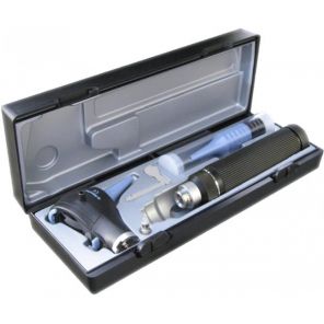 Головка отоскопа со штекерным замком: да Со съемным защитным стеклом: да Разъем для пневматического теста: да Хромированная съемная поворотная линза, 4-кратное увеличение: да Ушные воронки многоразового использования, диаметр 2, 3 и 4 мм: да uni головка May-офтальмоскопа со штекерным замком: да Корректирующие линзы от 0 до +20 и от 0 до -20 диоптрий с маленьким шагом: да Бленда - большой круг: да Расширительный риноскоп: да