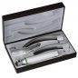 Рукоятка съемная, внутри нее размещаются батарейки. Использование встроенного аккумулятора было бы практичнее. Для хранения и удобной транспортировки инструментов есть пластиковый кейс. Клинок ларингоскопа с высококачественной волоконной оптикой со сменным световодом легко снимается и переоборудуется без специальных инструментов. Альтернативный вариант по доступной цене благодаря модульной конструкции.