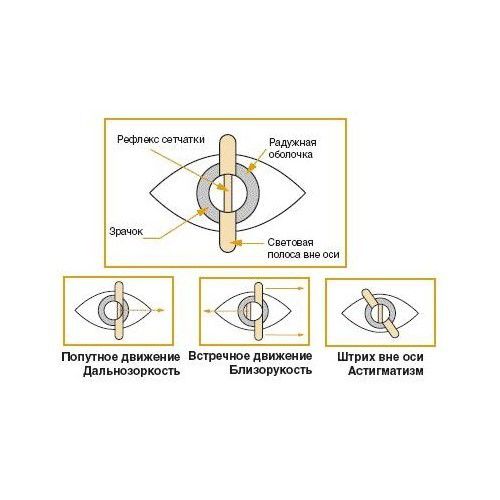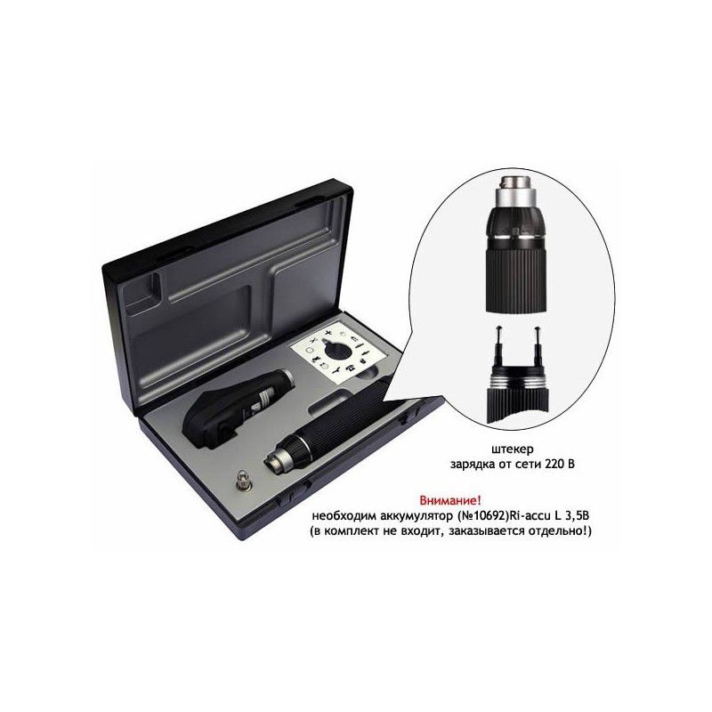 Ретиноскоп (скиаскоп) фиброоптический Ri-scope позволяет измерить рефракцию глаза, определить преломляющие отклонения, такие как астигматизм, дальнозоркость и близорукость. Щелевой: свет в виде линии двигается вертикально до оси поперёк зрачка пациента, делая лёгкие колебательный движения. Тень создаётся при помощи движений в том же или противоположном направлении. Удобство диагностики с помощью одного рабочего элемента для всех видов исследований. Щель может фокусироваться и перемещаться на угол 360°. Надёжный держатель для карт фиксации в положении для динамической скиаскопии. В комплекте две карты фиксации, позволяющие глазу пациента приспосабливаться к расстоянию до ретиноскопа. Для быстрого и надёжного присоединения головки инструмента к рукоятке используется штыковой замок. Рукоятка металлическая с черным хромированием, с устройством rheotronic® для регулировки яркости. Батареи, аккумуляторы, зарядное устройство ri-charger приобретаются отдельно.