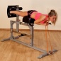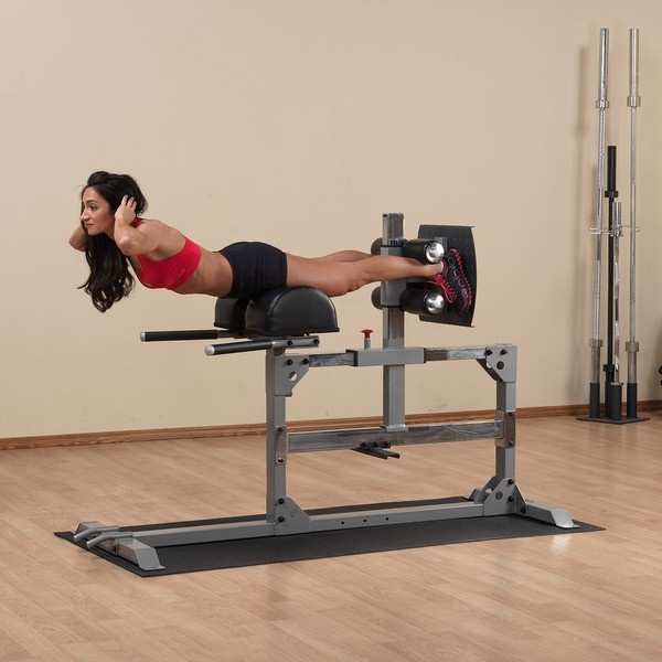 Римский стул модели Body Solid SGH500 отличается высокой износостойкостью, рассчитан на постоянное использование. Оборудование размещается в местах большой проходимости. Римский стул пригоден для выполнения различного вида упражнений. В частности: развитие мышц пресса, спины, нижних конечностей. Сверхпрочный каркас покрыт защитным лакокрасочным составом. Высота упора для ног регулируется механически. Грузоподъемность тренажера ограничена 150 кг.