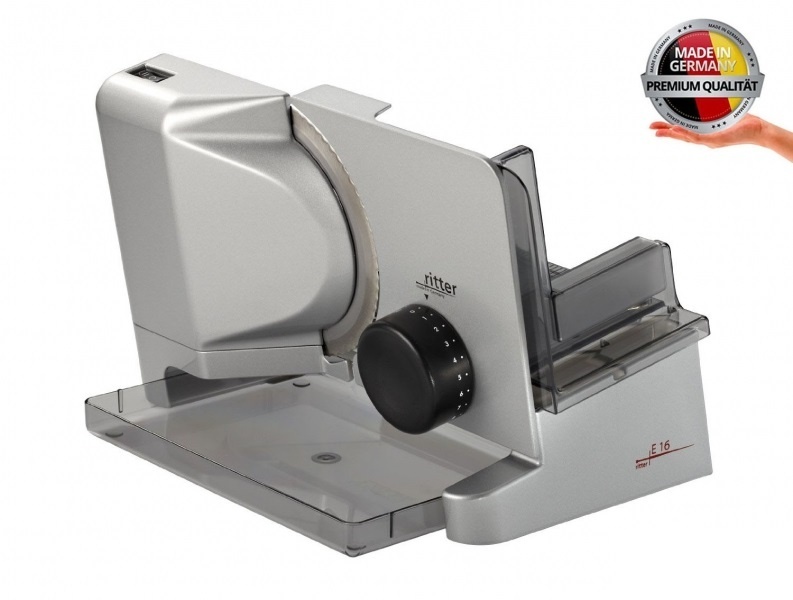 На кухне у себя дома, в ресторане или отеле – ломтерезка Ritter E16 облегчит работу повара и принесет немало пользы. Она поможет быстро нарезать аккуратными ломтиками одинаковой толщины колбасу, хлеб, сыр, ветчину и другие продукты. Работает от электрической сети и имеет кратковременный режим – он понадобится, если вам нужно обработать небольшое количество продуктов. Привлекает внимание стильный дизайн этой ломтерезки – он прекрасно гармонирует с другой кухонной техникой. Функционал прибора очень простой, поэтому даже начинающие кулинары без труда с ним разберутся. Регулировать скорость и толщину нарезки можно самостоятельно.
