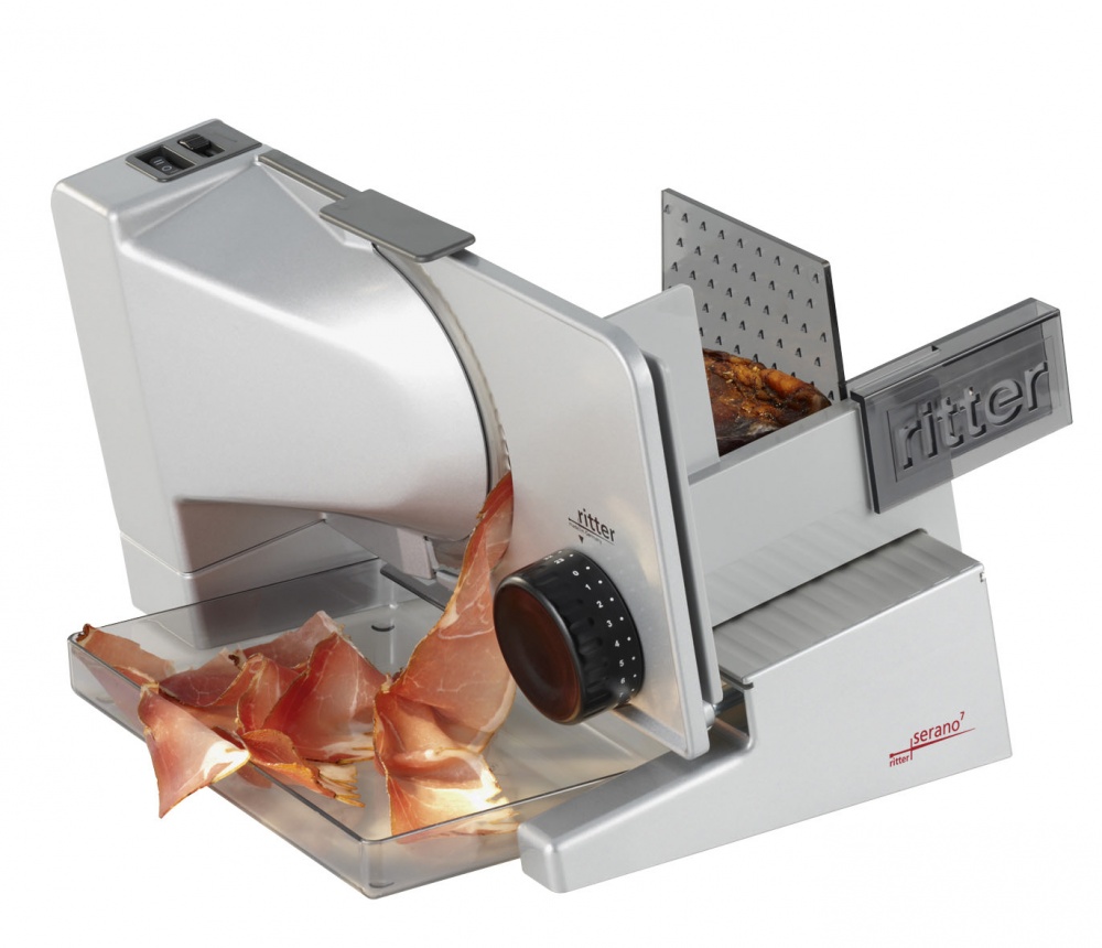 Ломтерезка Ritter SERANO7 - кухонное устройство для нарезки аккуратными ломтиками одинаковой толщины колбасы, хлеба, сыра, ветчины, овощей, фруктов.