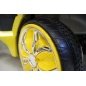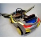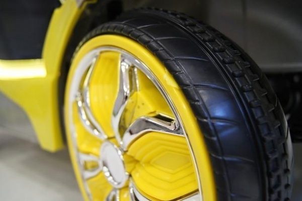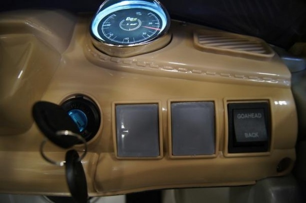 Каучуковые колеса с задними амортизаторами обеспечивают плавный ход даже по бездорожью. Машина имеет мощный электромотор, заводится с помощью ключа и может двигаться как вперед, так и назад. Кожаное сиденье оснащено пятиточечными ремнями безопасности.