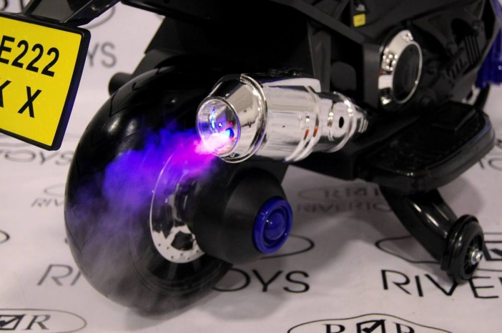 Стильный и яркий мотоцикл E222KX покорит сердца мотогонщиков любого возраста. Реалистичная модель настоящего мотоцикла с имитацией выхлопного газа из трубы (включается отдельно, заправляется водой).