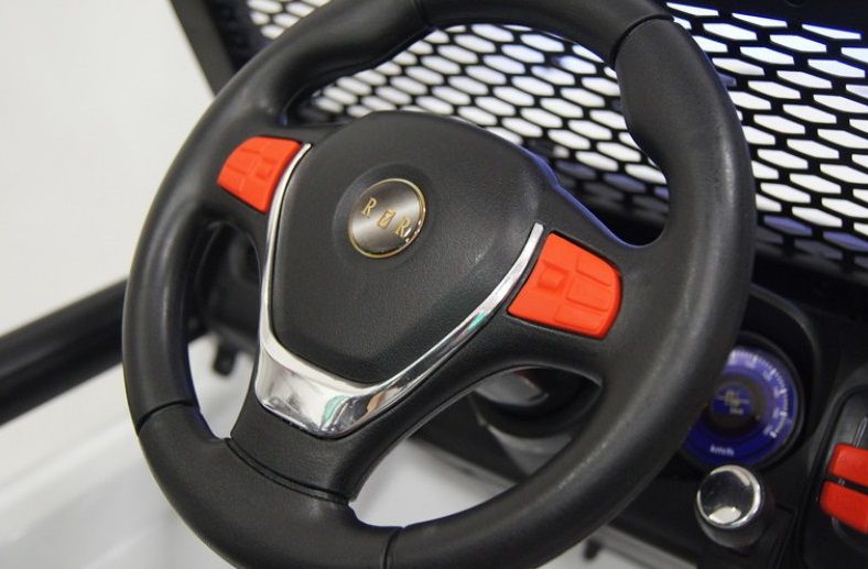 Управлять машинкой может, как ребенок, так и взрослый. В первом случае, мотор включается с кнопки и издается рев двигателя (включается световое табло), скорость регулируется нажатием педали газа. Во втором, регулировка происходит с помощью пульта ДУ для Вас (дает возможность контролировать скоростной режим, дальность передвижений).