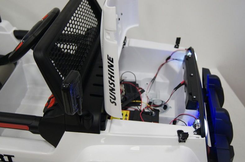 Музыку можно взять с собой на любом носителе. На главной панели имеется «магнитола» с разъемами для микро-карт, смартфона или плеера. Помимо звуковых эффектов, имеются и световые - диодная подсветка - передних и задних фар, панели приборов, фары прожектора.