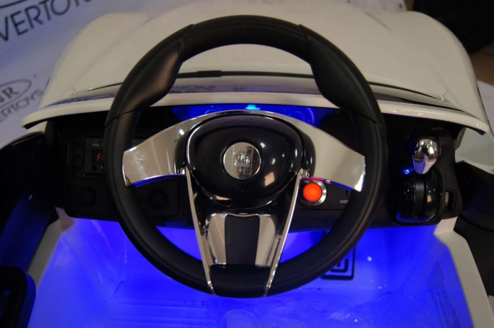 Электромобиль River Toys Maserati A005AA – это стильная машина с превосходными техническими характеристиками. В ней все продумано до мелочей. Двери, багажник и капот открываются. Ребенок может включить фары, подсветку салона и колес. Медиапанель с несколькими разъемами позволяет взять с собой в поездку любимую музыку.