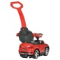 Мягкое кожаное сиденье обеспечивает удобство во время езды. Родительская ручка – съемная, что дает возможность детям самостоятельно толкаться ножками в случае ее отсутствия. Под сиденьем есть небольшой отсек, где можно хранить личные вещи либо игрушки.