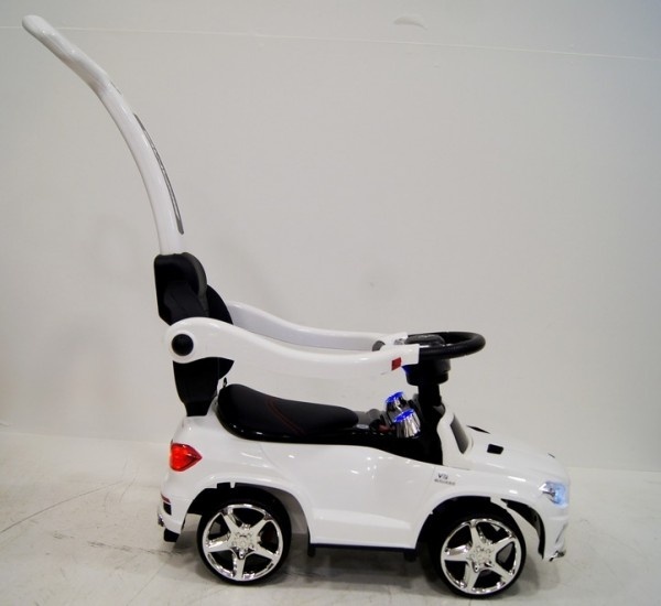 Детская каталка Mercedes-Benz GL63 A888AA-M выпускается по лицензии концерна Mercedes и предназначена для самых маленьких автолюбителей. Несмотря на свои миниатюрные размеры, модель оборудована всем необходимым, чтобы поездка на ней доставила удовольствие крохе и была максимально безопасной для него.