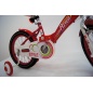 Детский велосипед с приставными колесами. Стильная и яркая расцветка. Прочная стальная рама, диски с литыми спицами, надувные колеса, гибкие пластиковые крылья, передний и задний ручной тормоз, звонок, удобное сиденье, регулируемое по высоте, сзади имеется ручка для поддержки. Укомплектован насосом, комплектом ключей! Диодные передний и задний фонарь с 3 режимами мигания, в том числе аварийным.