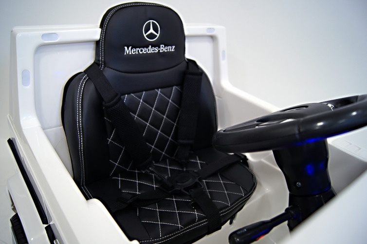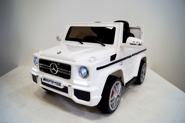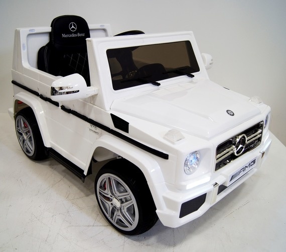 Mercedes-Benz-G-65-LS528 (лицензионная модель)-это мини копия легендарного Гелендвагена от концерна Мерседес. Стильный дизайн, различные цветовые решения и широкий функционал не оставят маленького водителя равнодушным. Как и у взрослого авто в машинке включаются фары, есть реалистичная панель приборов с настоящей магнитолой. Шикарное мягкое водительское кресло 5-точечным ремнем безопасности и большой эргономичный руль оснащены лицензионной эмблемой Мерседес. Машинка оборудована двумя двигателями по 35 Ватт и 12-вольтным аккумулятором, которые обеспечат двух часовое катание без подзарядки, разгоняется Mercedes-Benz-G-65-LS528 до 6 км/ч. Родители могут не волноваться за безопасность маленького гонщика, ведь управлять электромобилем можно не только из салона, но и с помощью Bluetooth пульта.