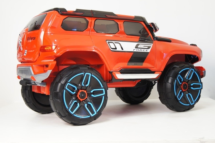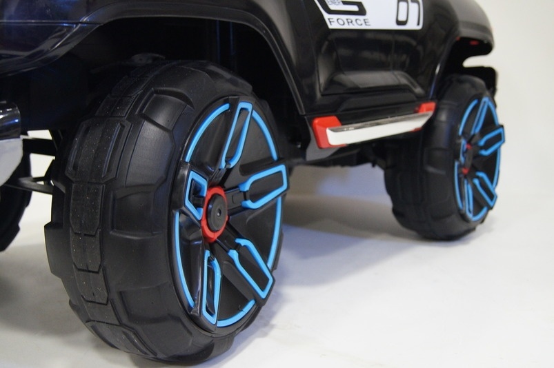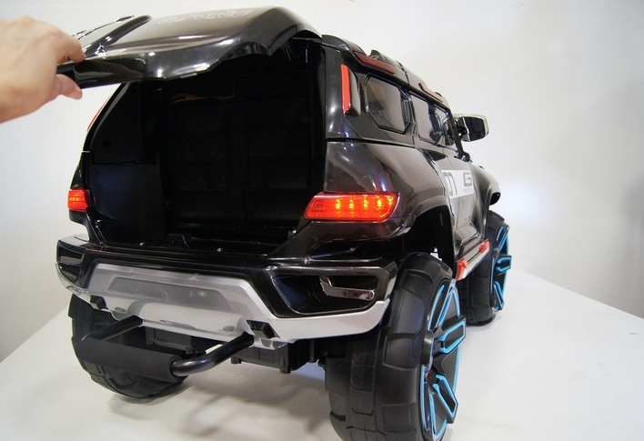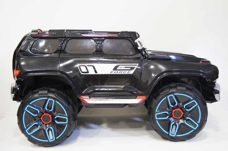 Высокий дорожный просвет и большие колеса со специальными протекторами обеспечивают электромобилю проезд по бездорожью и надежное сцепление с любой поверхностью. Открывающиеся двери делают посадку в авто легкой и удобной. Вместительный багажник позволит взять с собой на прогулку необходимые мелочи.