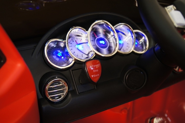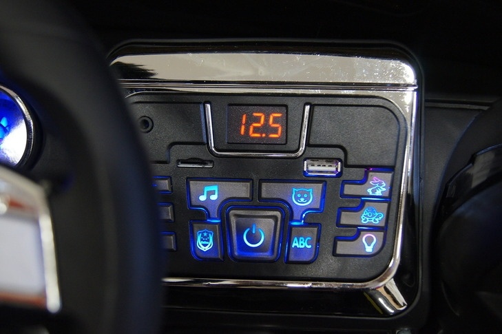Имеющийся в комплекте пульт родители могут настроить по Bluetooh на управление только машиной своего ребенка и на расстоянии помогать ему справляться с вождением.