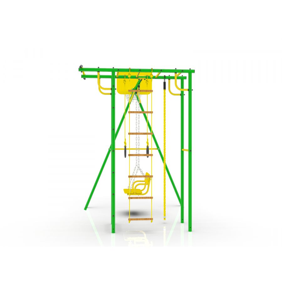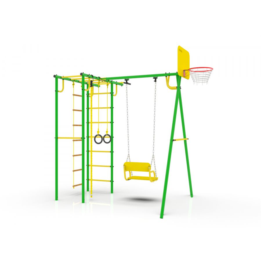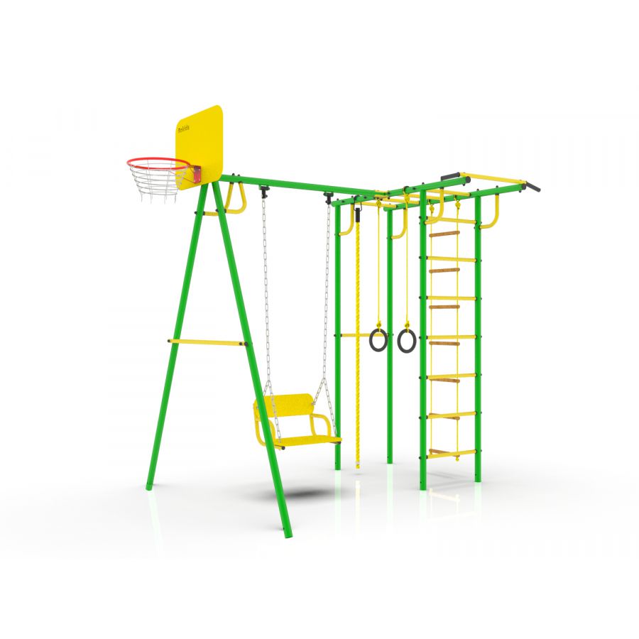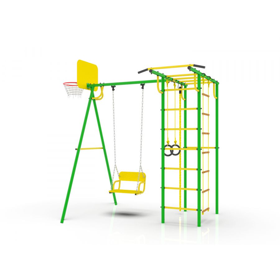 Богатая комплектация комплекса позволит чередовать развлечения и занятия спортом. Прочная устойчивая металлическая конструкция выдерживает нагрузку до 100 кг. Устанавливается путем бетонирования закладной детали на глубину 45 см, при необходимости легко разбирается и заново устанавливается.