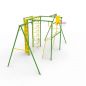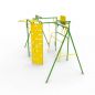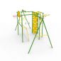 Детский спортивно-игровой комплекс предназначен для установки на улице. Каркас изготовлен из металла и покрыт эмалью, устойчивой к атмосферным явлениям. Несмотря на кажущуюся прочность конструкции, заявленная производителем максимальная нагрузка не должна превышать 100 кг, что существенно ограничивает количество людей, которые могут одновременно пользоваться комплексом.
