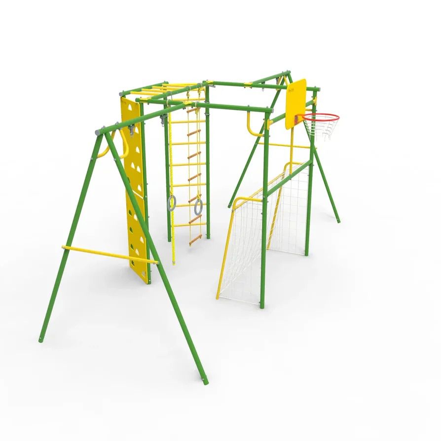 Детям доступны различные тренажеры и локации – баскетбольное кольцо, турник, рукоход, лестницы, кольца и многое другое. Уличный детский спортивный комплекс УДСК-7.3 Атлет-К2 включает в себя рукоход, турник, регулируемый по высоте, ворота, скалодром, кольцо баскетбольное, кольца гимнастические, канат, лестница веревочная, закладные для бетонирования.