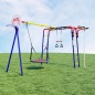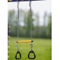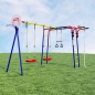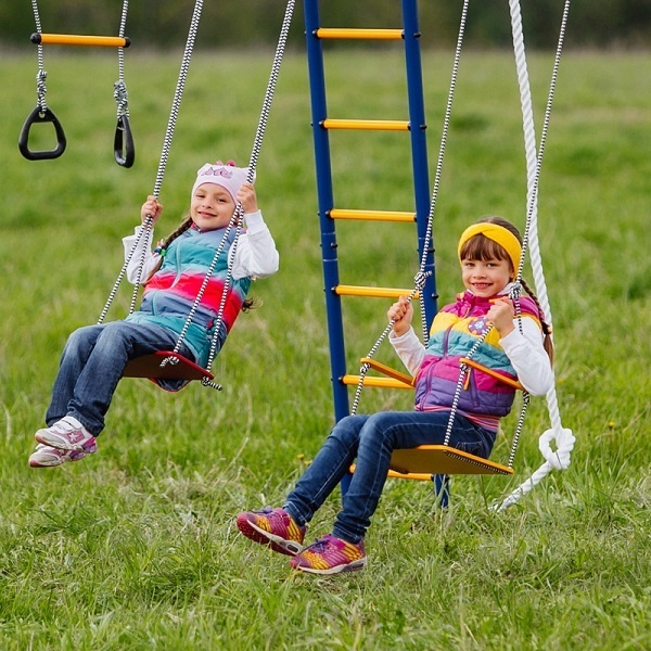 Комментарий: комплекс достаточно удачный по составу, т.к включает в себя помимо прочего и качели 2 шт. Качели располагаются достаточно низко над землей, для малых безопасно, но корректировать высоту можно. Качество отличное, металл и краска хорошие, конструкция крепкая, яркая. Меня все устраивает, и детям конечно же нравится