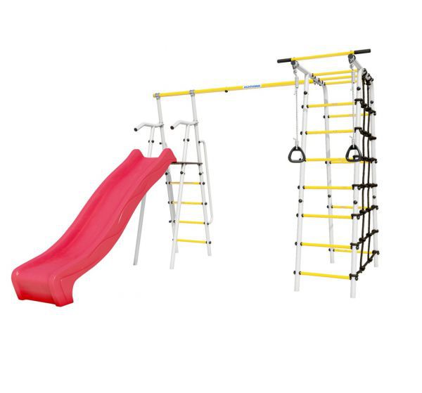 Дачный спортивный комплекс нового поколения ROMANA «Богатырь» — настоящая находка для активных и подвижных детей. Прекрасное приобретение для дачи или загородного дома. Маленький приключенец будет просто в восторге, а родители cмогут любоваться как малыш растет, крепнет и превращается в самого настоящего богатыря! В дачном комплексе предусмотрена удобная и безопасная горка, рядом с которой располагаются качели. Другая часть комплекса состоит из лестницы и турника, а также канатного лаза, сделанного из шнура повышенной прочности. В комплекте также предусмотрены гимнастические кольца. Все навесное оборудование выполнено из атмосферостойких материалов — в летнее время их можно не убирать в дом после занятий. Приключения обещают быть захватывающими! Конструкция комплекса прочная и выдерживает человека весом 100 кг (нагрузка при испытаниях комплекса — 200 кг). Дачный комплекс ROMANA «Богатырь» достаточно компактный и не займет много места на придомовом участке. ROMANA «Богатырь» — отличный выбор для родителей, которые хотят занять своих домочадцев активными играми на лоне природы!