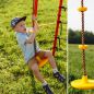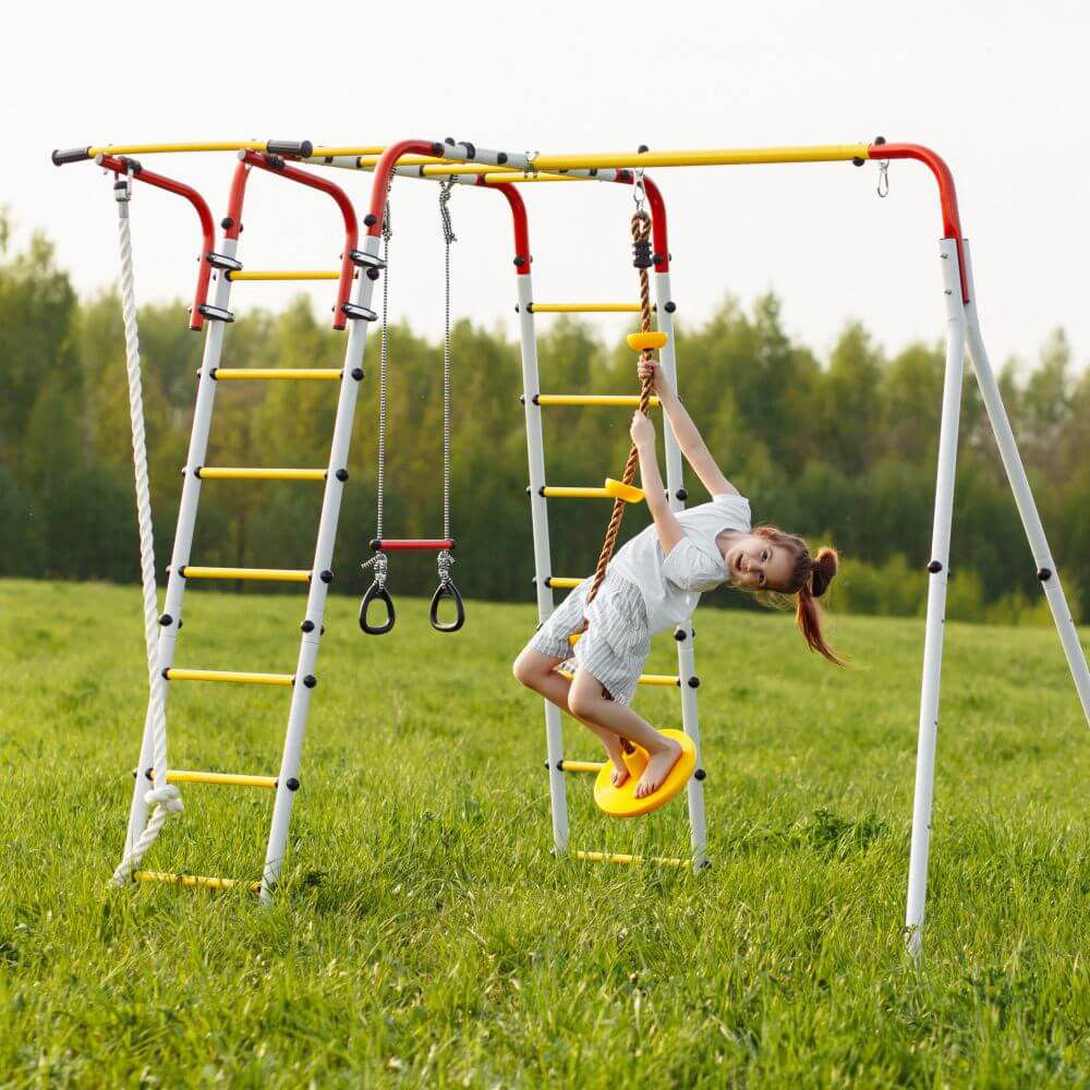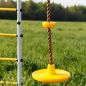 Полезное оборудование для тренировки ловкости, координации и вестибулярного аппарата — простой подвес с круглым деревянным сидением. Дети любят раскачиваться на нем, его можно повесить на любую перекладину спортивного комплекса Romana.