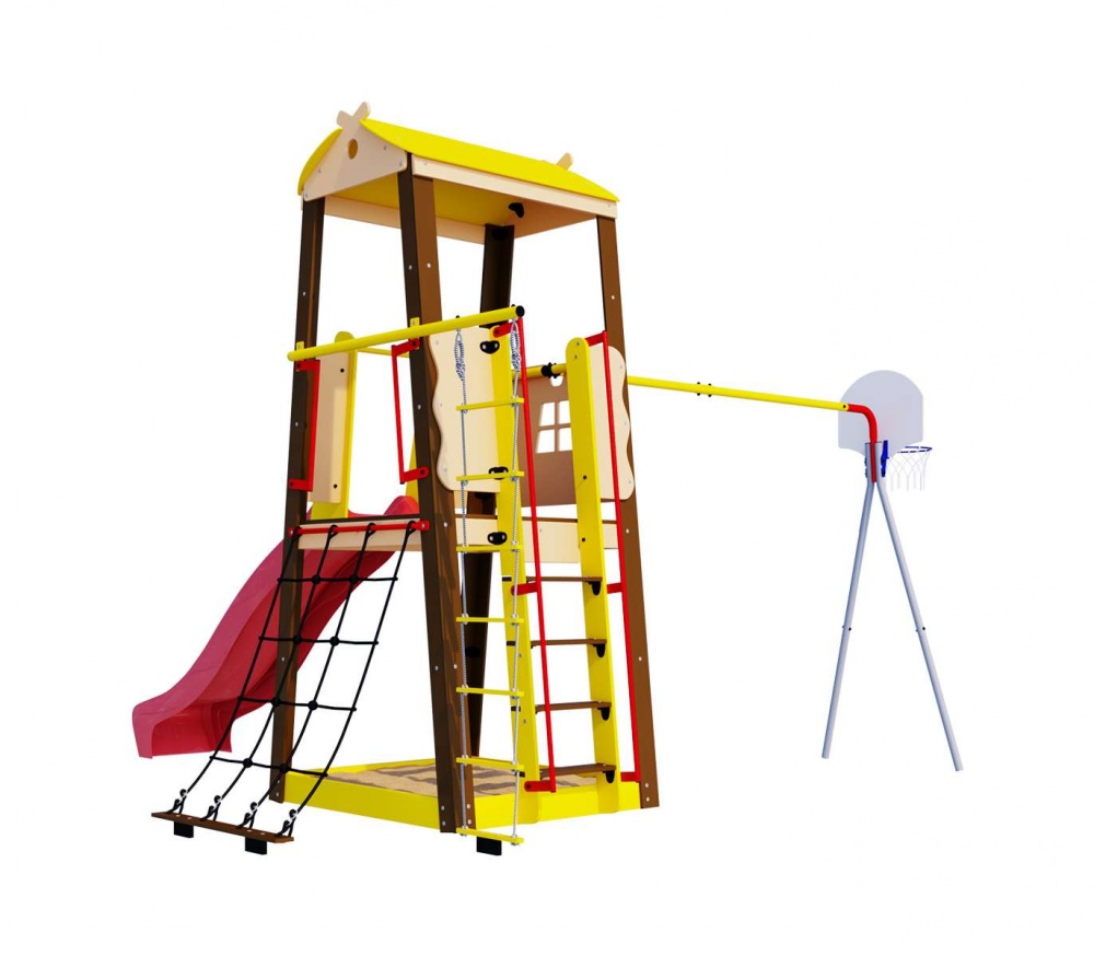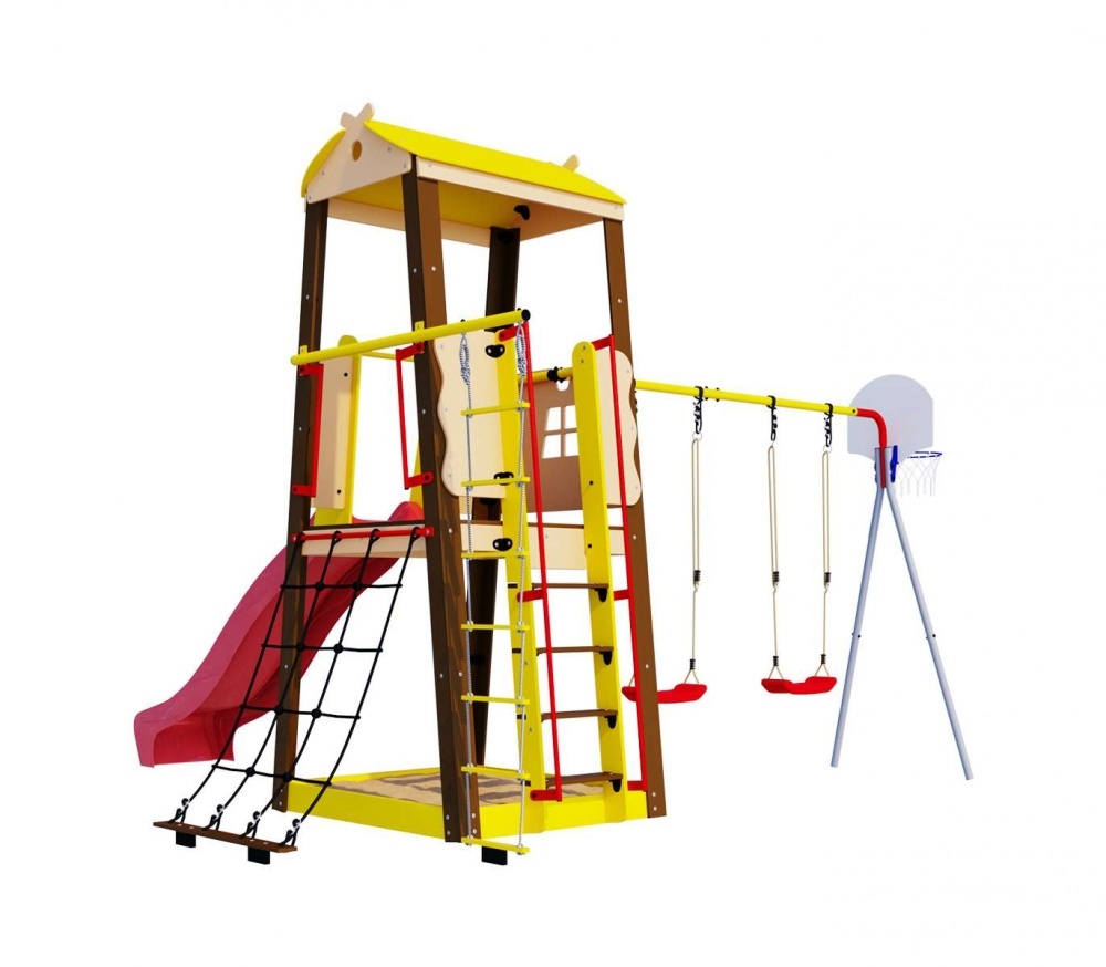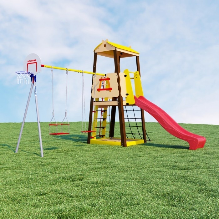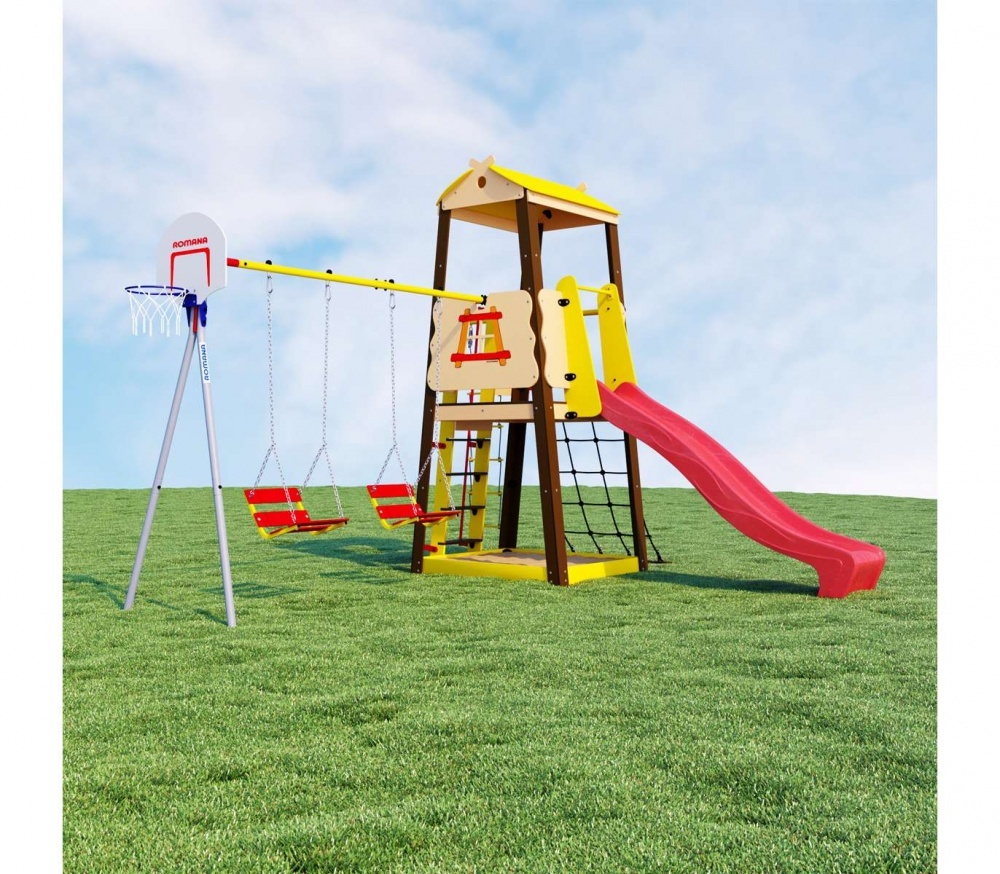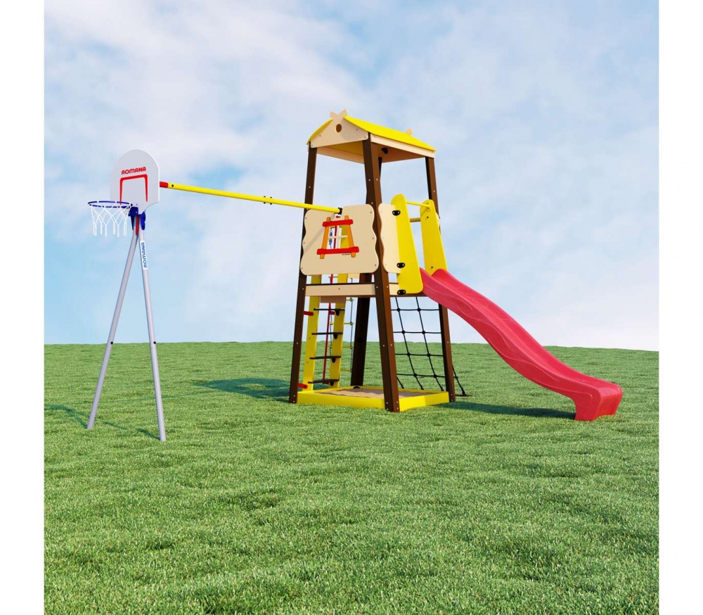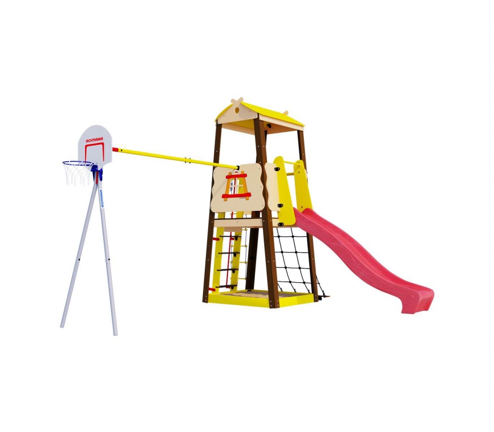Спортивно-игровой комплекс для улицы Romana Избушка – настоящее сказочное место для увлекательной игры вашего ребенка! Эта модель станет идеальным решением для удачного совместного отдыха всей семьей на даче или загородном доме. Комплекс не займет много места и не доставит проблем в процессе эксплуатации. Привлекает внимание яркий дизайн изделия, который подарит радость детям и их родителям, обеспечив полезный для здоровья досуг на свежем воздухе. Конструкция избушки выполнена из влагостойкой фанеры, которая отличается повышенной прочностью и надежностью, обладает стойкостью к атмосферным воздействиям. Для увлекательного досуга детей также есть песочница, пластиковая горка и баскетбольный щит. Кроме того, конструкция дополнена канатным лазом. Производитель гарантирует качество и долговечность службы этого детского комплекса, что делает такую покупку разумной инвестицией в здоровье и физическое развитие детей.