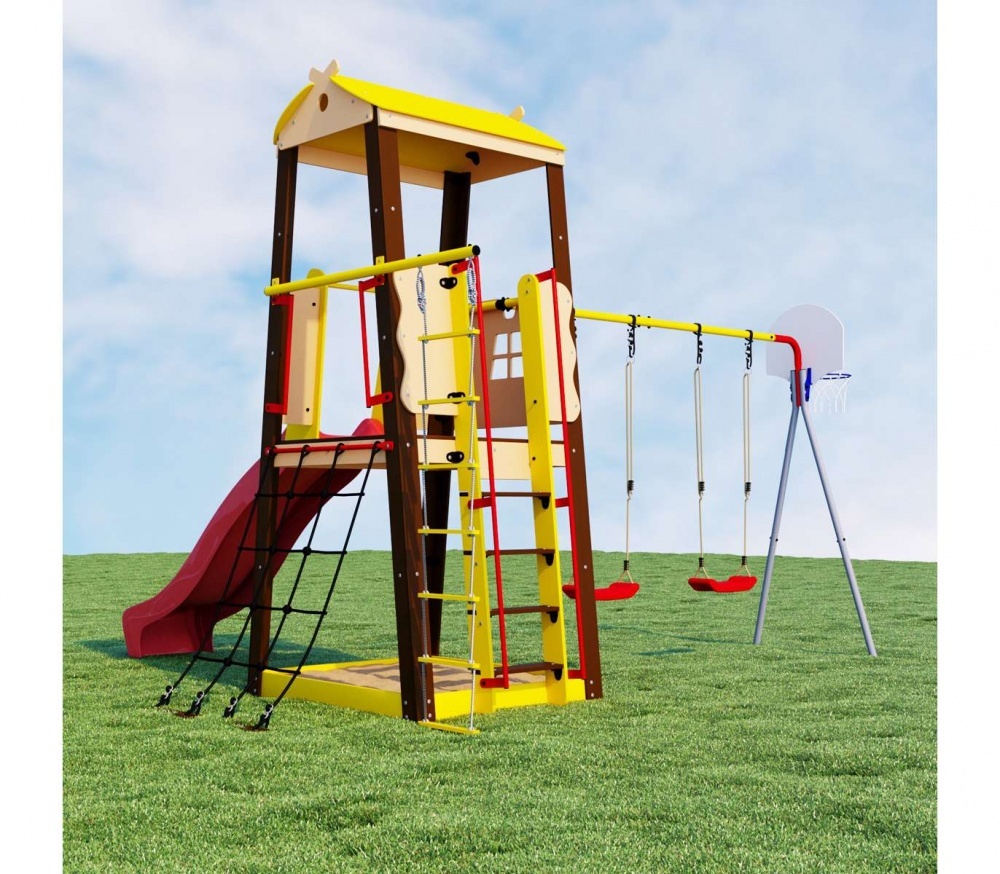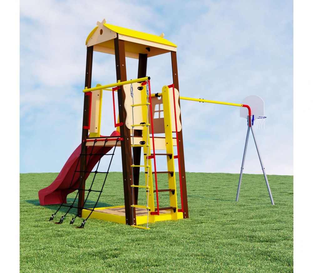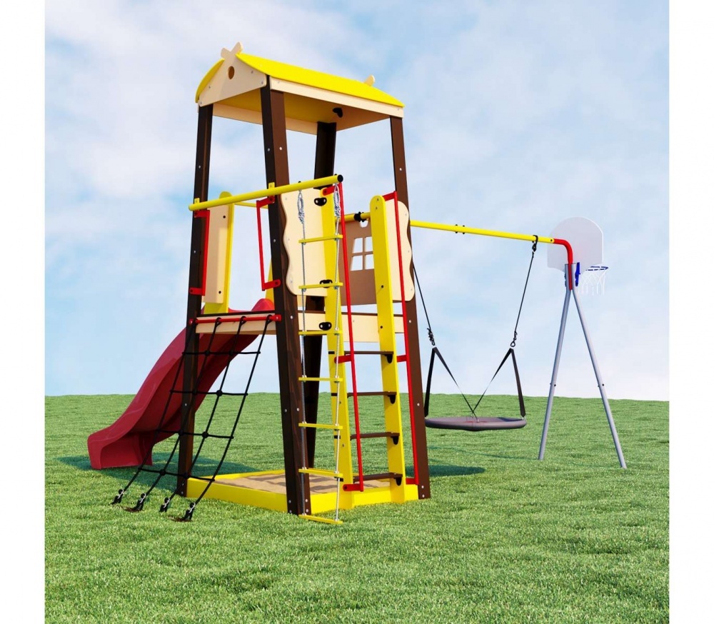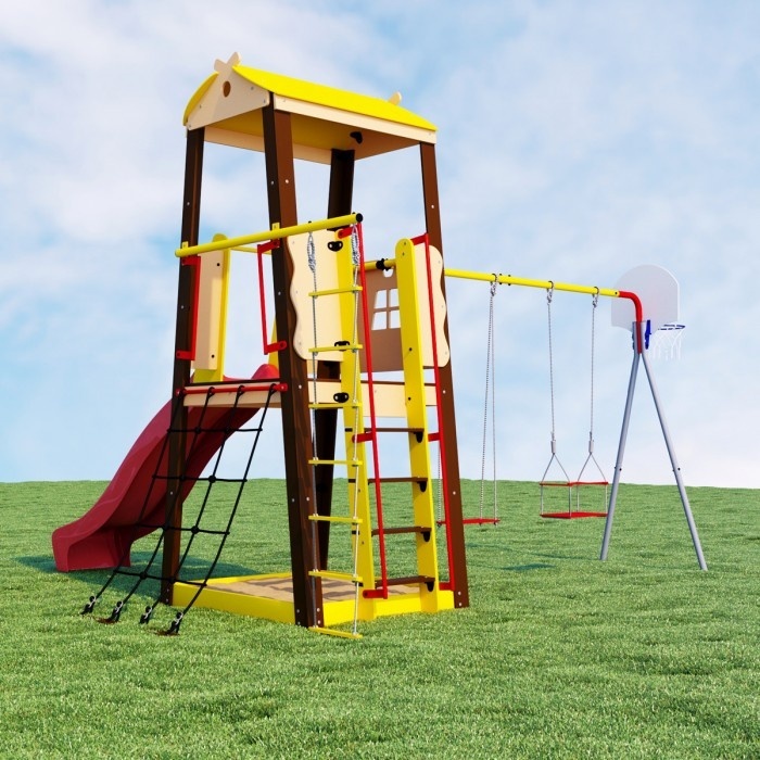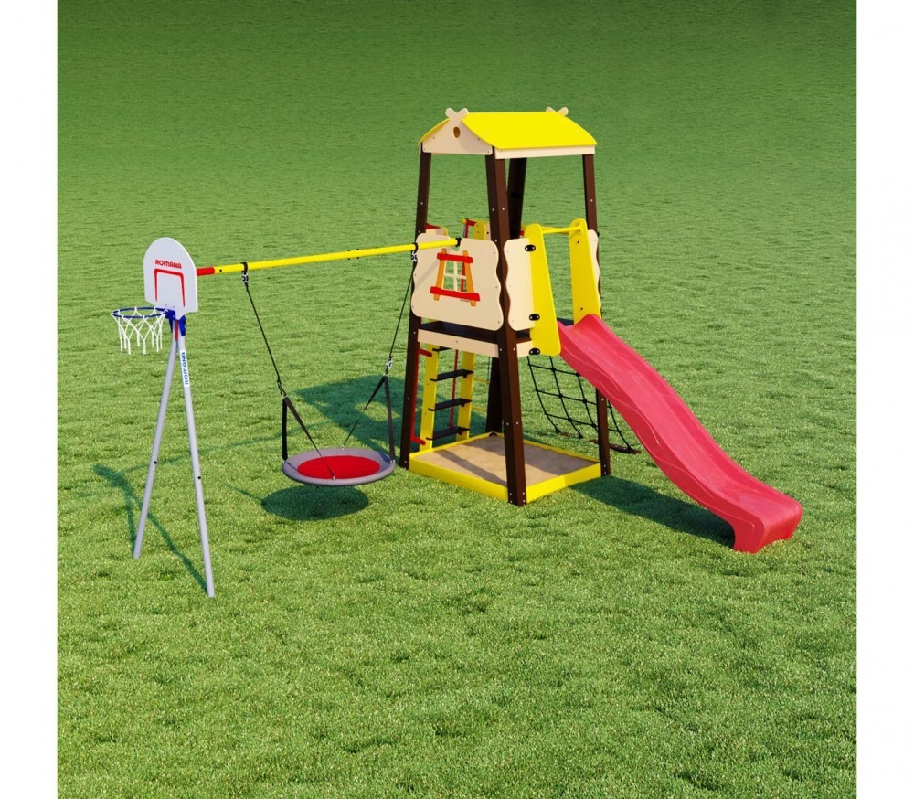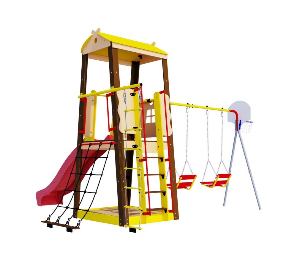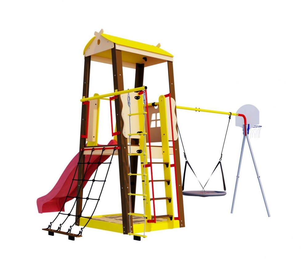 Спортивно-игровой комплекс для улицы Romana Избушка – настоящее сказочное место для увлекательной игры вашего ребенка! Эта модель станет идеальным решением для удачного совместного отдыха всей семьей на даче или загородном доме. Комплекс не займет много места и не доставит проблем в процессе эксплуатации. Привлекает внимание яркий дизайн изделия, который подарит радость детям и их родителям, обеспечив полезный для здоровья досуг на свежем воздухе. Конструкция избушки выполнена из влагостойкой фанеры, которая отличается повышенной прочностью и надежностью, обладает стойкостью к атмосферным воздействиям. Для увлекательного досуга детей также есть песочница, пластиковая горка и баскетбольный щит. Кроме того, конструкция дополнена канатным лазом. Производитель гарантирует качество и долговечность службы этого детского комплекса, что делает такую покупку разумной инвестицией в здоровье и физическое развитие детей.