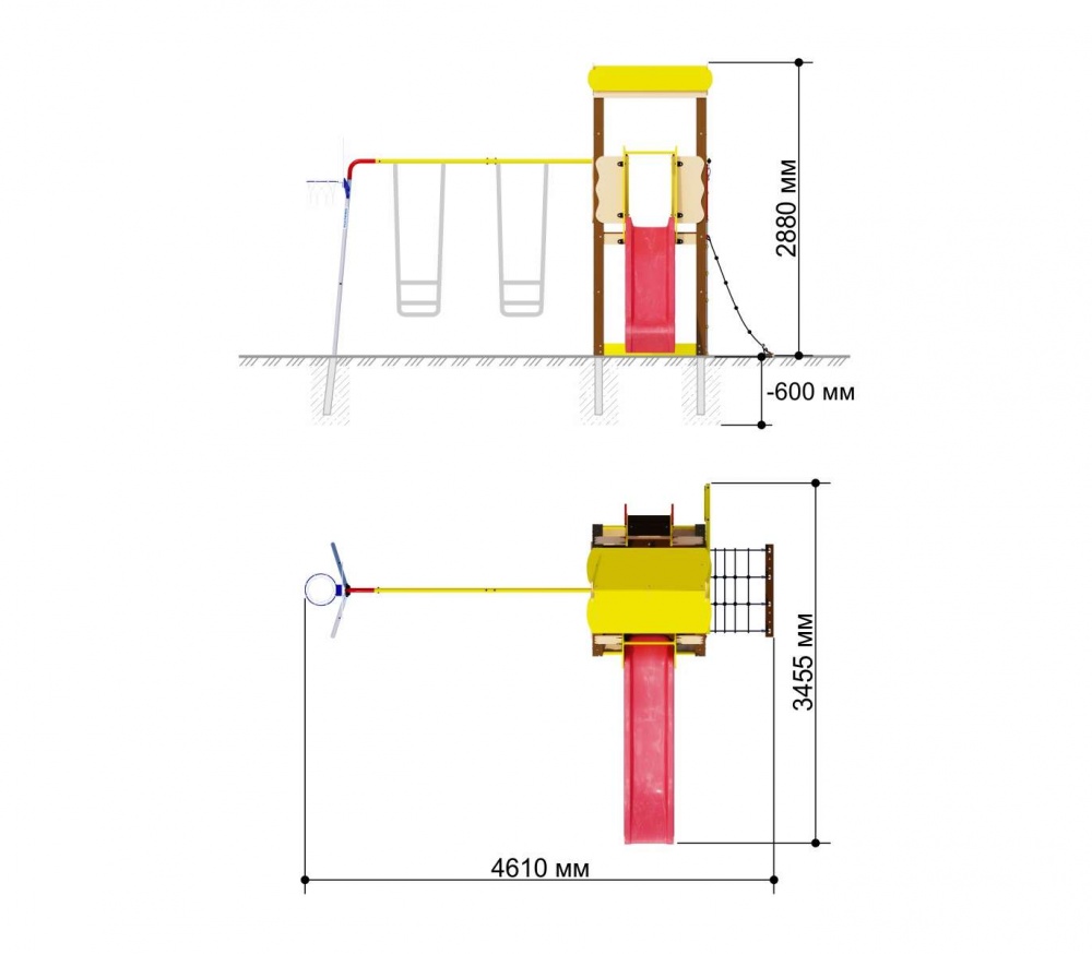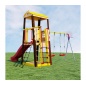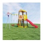 Комментарий: мне нравится идея такого комплекса тк намного больше по душе,нежели из металла. Горка под минимальным углом наклона, ступеньки удобны для детской стопы. Осадки внутрь песочницы не попадают и можно спокойно играть