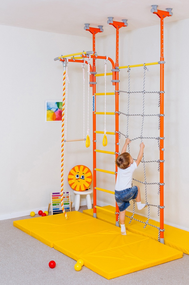 В комплекте есть широкий канатный лаз. Его можно отклонить в разные стороны, если это необходимо, согласно планировке комнаты. Улучшение получил шнур, он стал еще крепче.