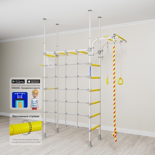 Создать полноценный спортивный уголок у себя дома с экономией места в детской комнате поможет шведская стенка Romana Karusel R4. Установив это спортивное оборудование, ребенок получит все необходимое для гармоничного физического развития в комфортной и безопасной домашней обстановке – турник, гимнастическую лестницу, канатный лаз, баскетбольный щит и рукоход. На рукоходе для безопасности пользователей предусмотрены антискользящие накладки. По мере взросления ребенка можно дооснастить шведскую стенку и другим оборудованием в зависимости от интересов и увлечений маленького пользователя. В процессе производства конструкции производитель учитывал все потребности детей и использовал лучшие материалы, обеспечивающие надежность и долговечность службы. Все узлы шведской стенки фиксируются враспор, установить его можно в любом месте комнаты – это позволяет сделать интерьер эксклюзивным и сэкономить полезное пространство.