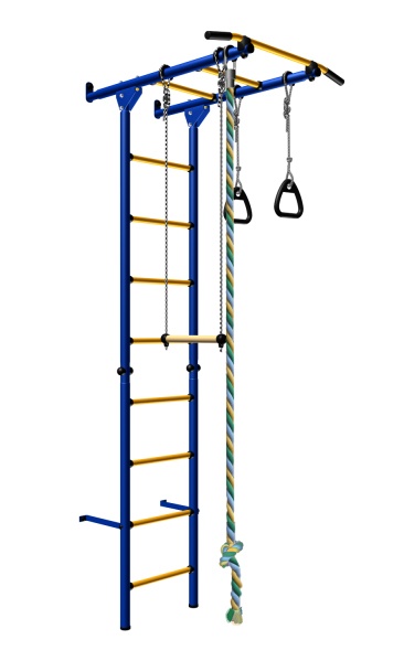 Основу комплекса составляет шведская стенка. Металлические части конструкции покрыты защитным, антикоррозийным лакокрасочным составом.