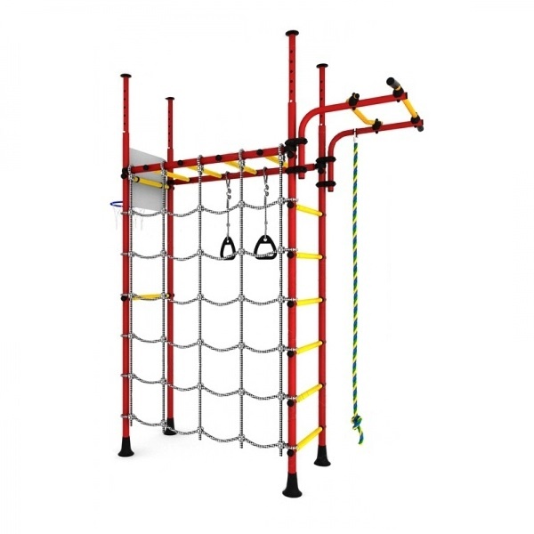 Первые три ступени – массажные, со специальным покрытием, которое улучшает кровообращение и дарит хорошее настроение. Функционал этого спортивного комплекса достаточный для физических упражнений – это лестницы, турники, рукоход, канат баскетбольный щит и другие элементы.