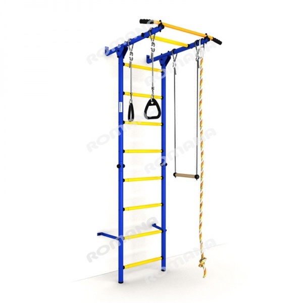 Шведская стенка создана для активного время провождения и выполнения различных упражнений. Стенка составляет основу комплекса, имеет не скользящие ступени с массажной поверхностью. Стенка комплектуется турником, гимнастической лестницей, канатом, трапецией и кольцами. Крепление комплекса производится специальными кронштейнами. Тип крепление ограничивает использование комплекса в помещениях с хрупкими стенами. Весовое ограничение нагрузки на комплекс составляет 100 кг.