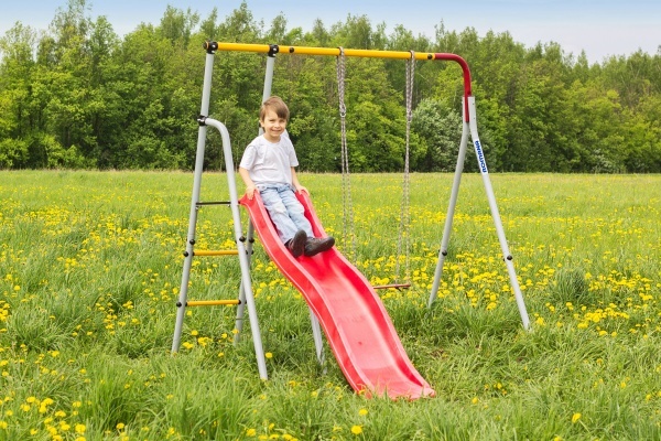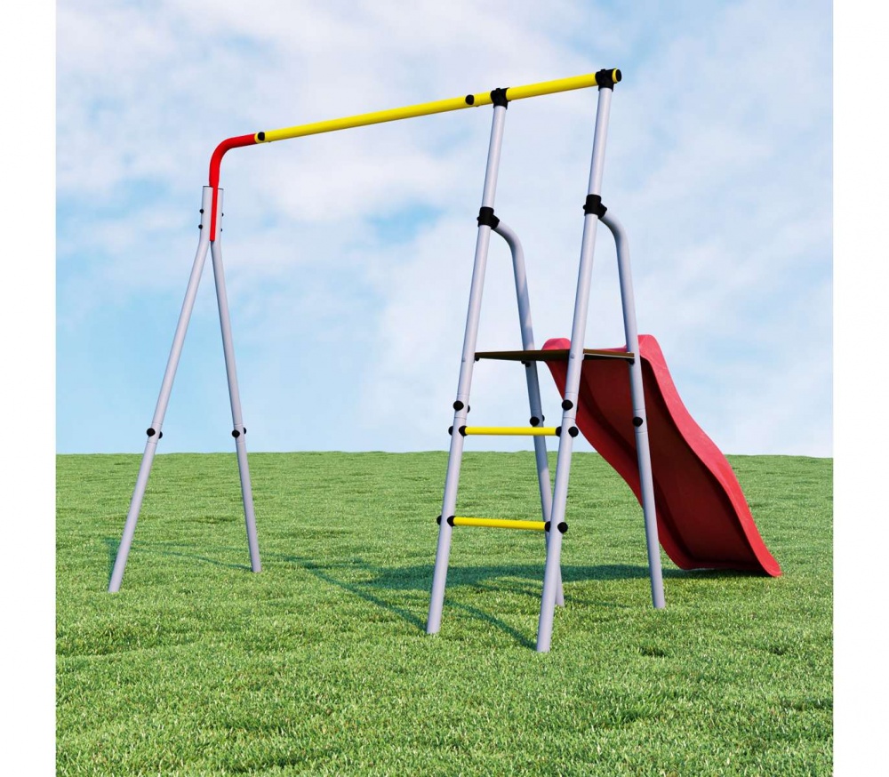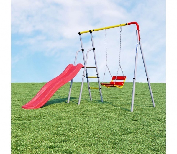 Детский спортивный комплекс "Лето" можно устанавливать в любом удобном для эксплуатации месте – на даче, во дворе школы или детского сада. Приобретение таких конструкций – несомненный вклад в здоровье детей! Конструкция рассчитана на два самых любимых занятия детворы на улице — катание с горки и на качелях. Компактные габариты изделия не занимают много места, и такой комплекс поместится даже на небольшом приусадебном участке. Основой детского игрового комплекса выступает металлическая опора, на которую крепятся качели и горка. Все элементы продуманы с точки зрения надежности и безопасности для детей. Горка имеет прочные и высокие бортики, чтобы исключить случайные падения, а качели можно установить на любой высоте. Отдельным преимуществом также является яркий универсальный дизайн этого детского комплекса, который станет украшением любого двора или игровой площадки!
