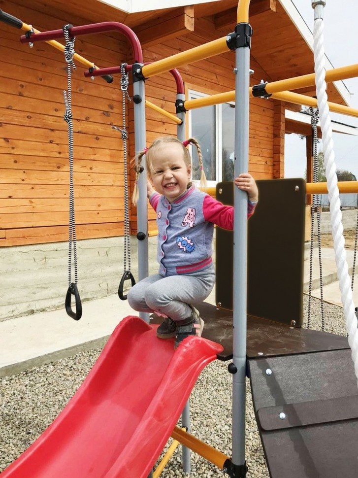 Комментарий: комплекс мы приобрели не так давно. Из явных плюсов могу заметить - прочность конструкции, безопасность горки. Его можно использовать взрослым ( турник выдерживает до 100кг). Не могу говорить за всех, но мы довольны, что в нашей семье появился игровой комплекс на улице